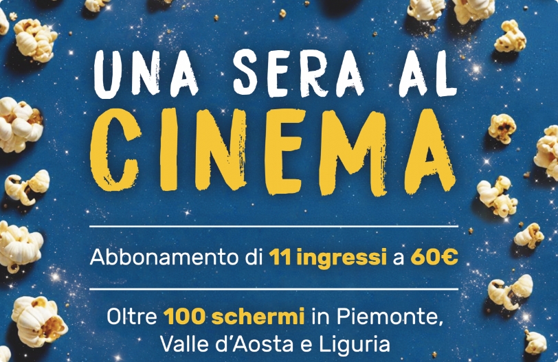 Una sera al cinema permette di accedere per un anno, dall’1° ottobre al 30 settembre, ad oltre 130 schermi tra Piemonte, Valle d’Aosta e Liguria che programmano dalle prime uscite blockbuster ai grandi film d’essai.